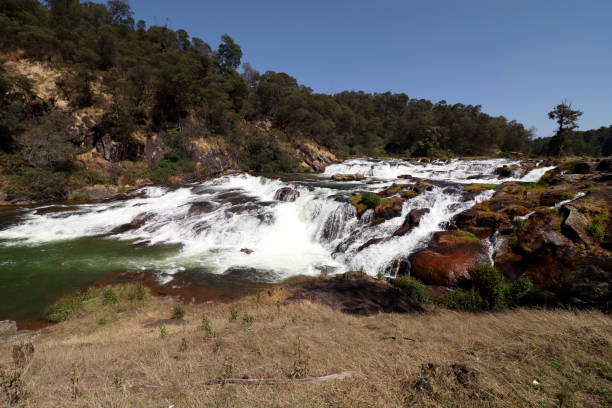Scenic view of Pykara waterfalls Tamil Nadu during springtime under the beautiful clear sky during summer season.